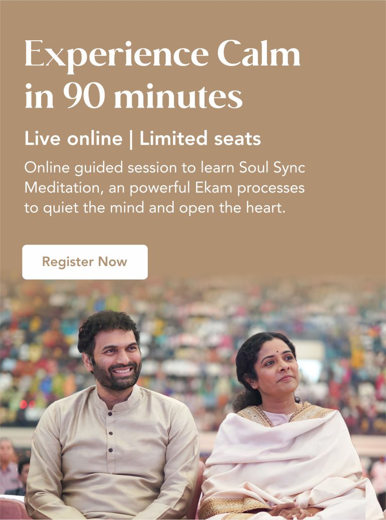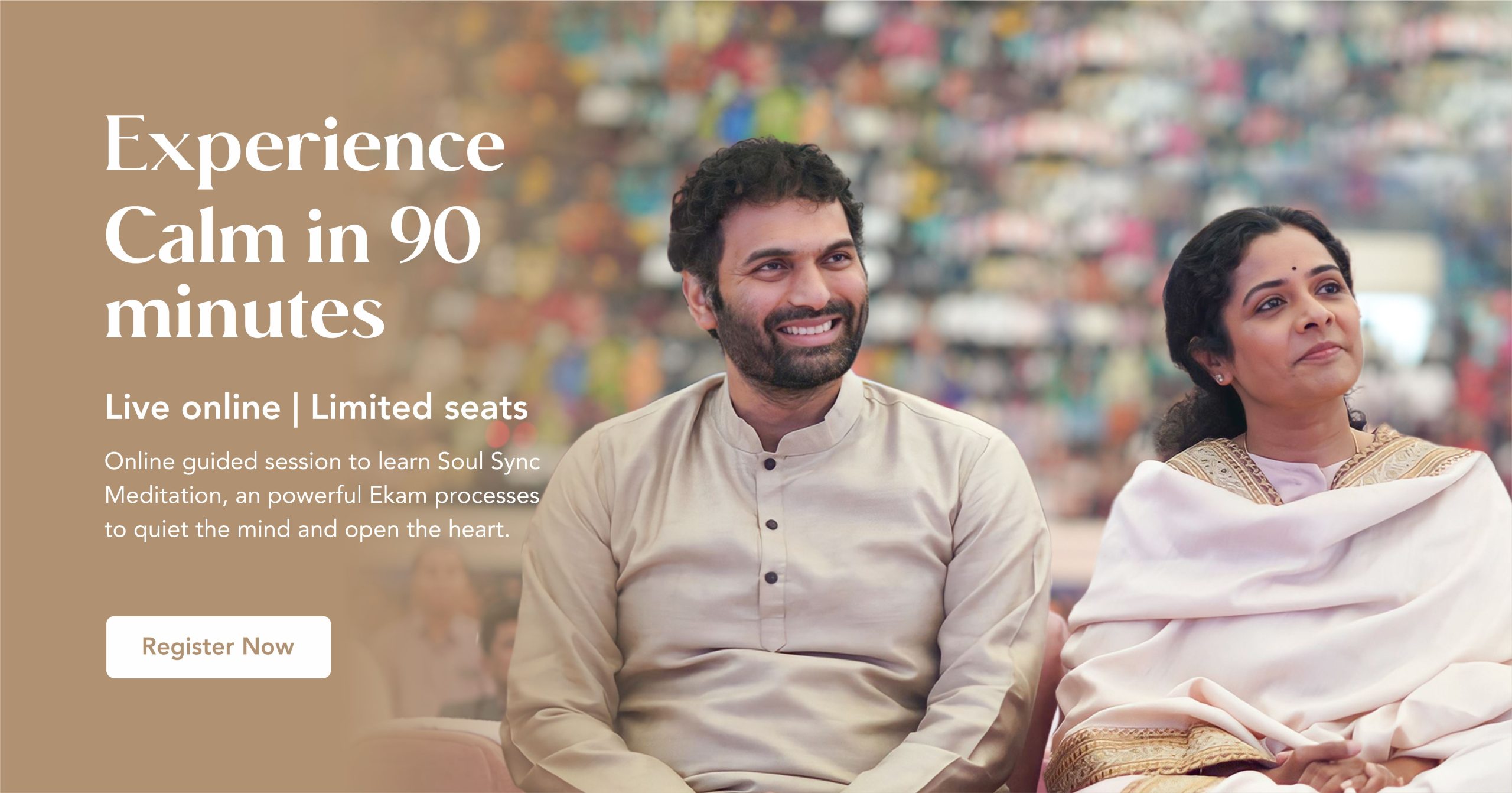 These practices come from the spiritual work of Sri Preethaji and Sri Krishnaji at Ekam – The World Center for Enlightenment. Thousands of seekers across the world practice Soul Sync to experience peace, connection, and graceful living.